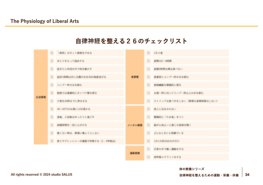 今回の内容は「自律神経を整える運動・栄養・休養」というお題でお話しさせていただきました。