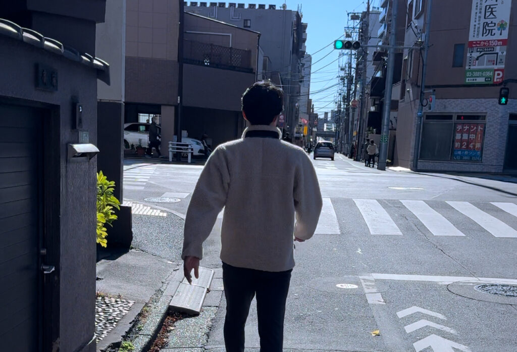 千住大橋駅東出口を左に出て信号を渡ります。