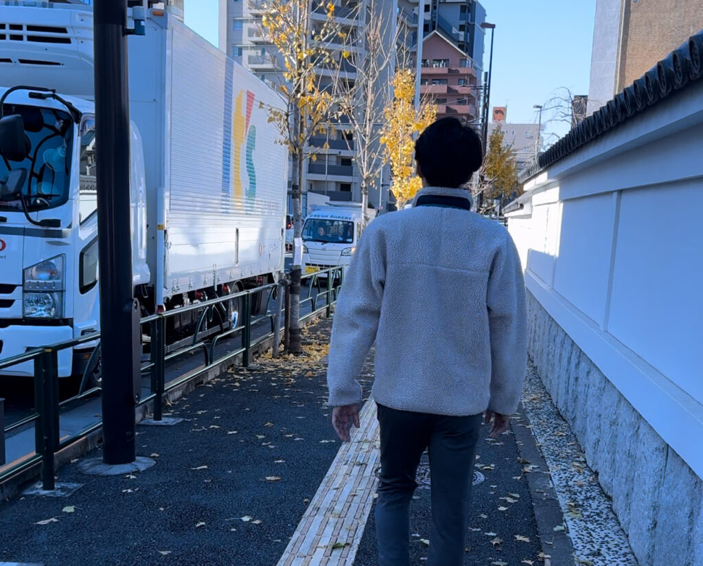 その道をまっすぐに歩くと『墨堤通り』と言う大きな通りに当たりますので右に曲がります。